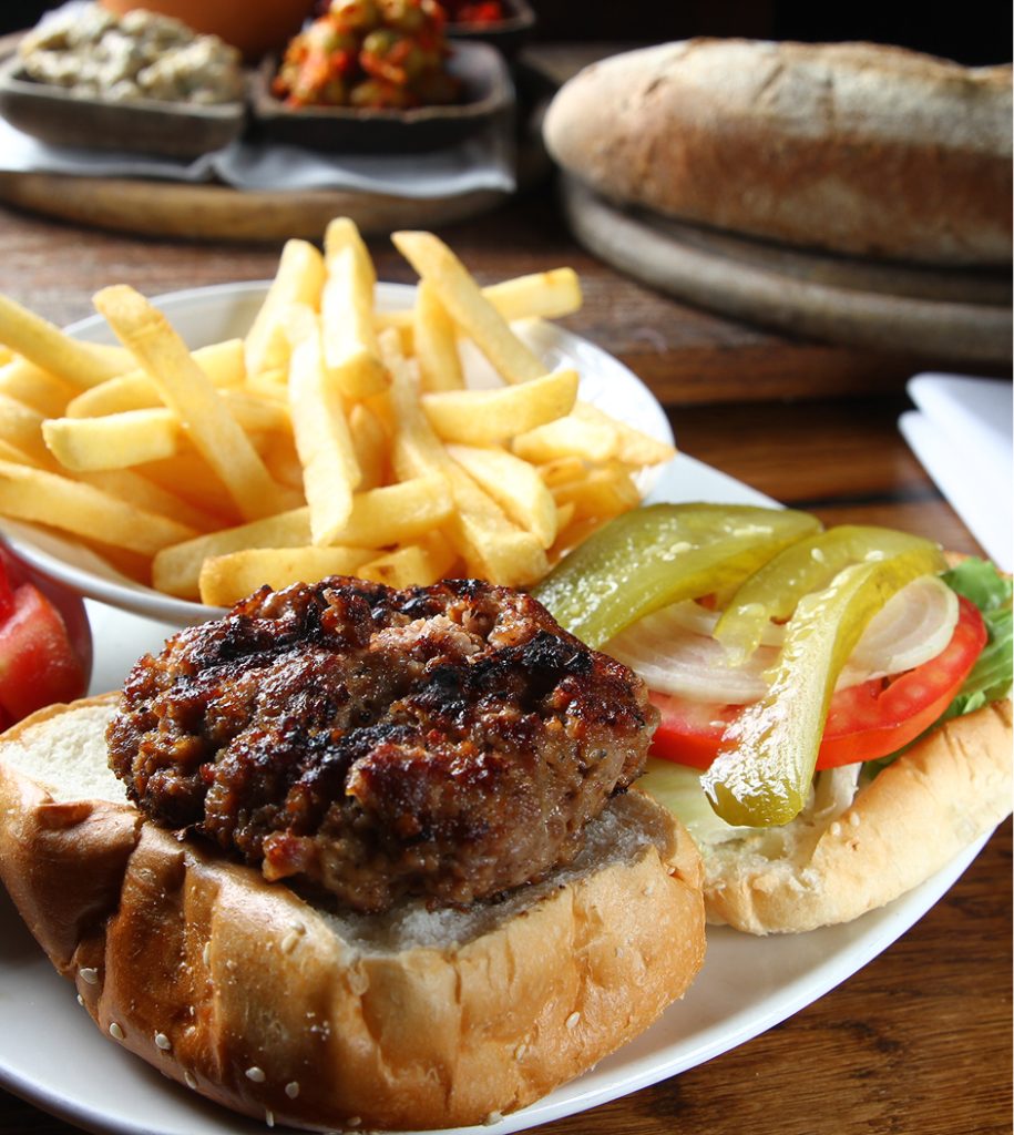 ההמבורגר שלנו הוא מתכון שמוכן במקום, טרי יום יום ובדומה לגרסה הפראית של הבוקר הארגנטינאי "הגאוצ'ו"